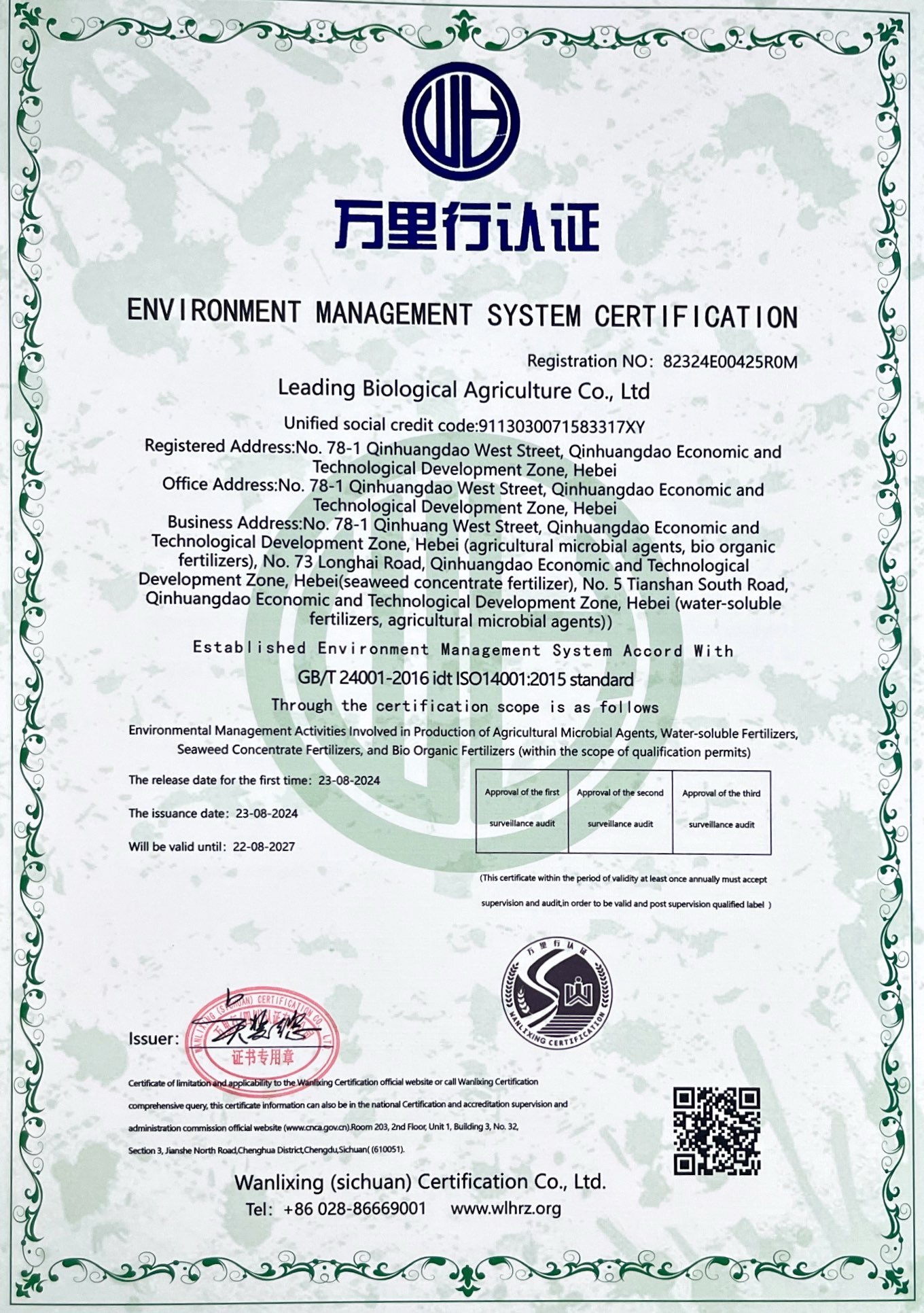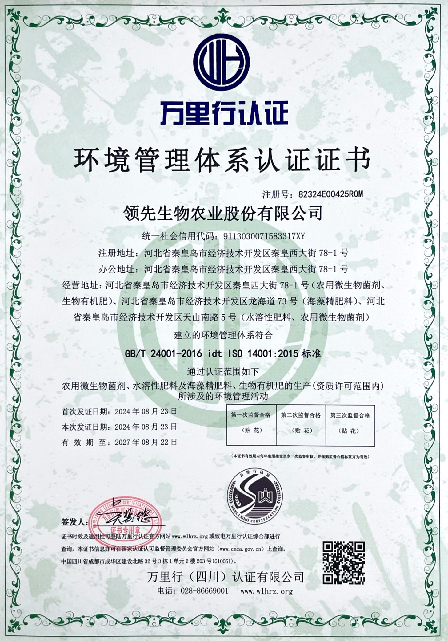 環(huán)境管理體系認(rèn)證證書(shū)