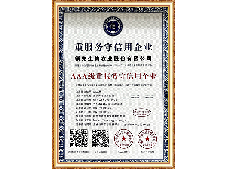 AAA級重服務守信用企業(yè)